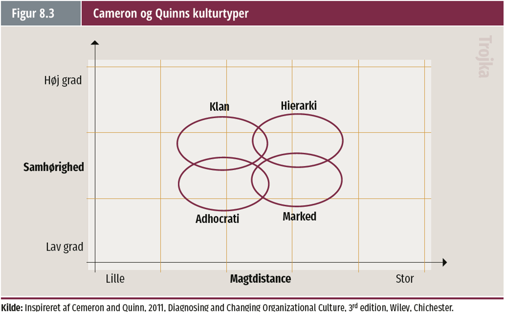 • Markedskulturen, der er kendetegnet ved indbyrdes konkurrence og formel magt.