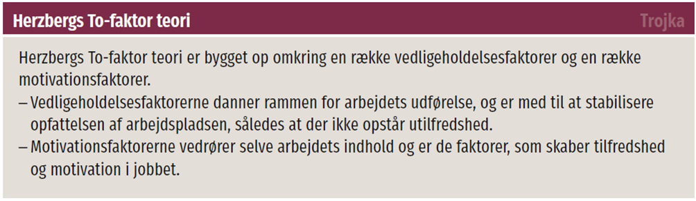 Motivationsfaktorer vedrører selve arbejdet. Det kan fx være mulighed for udvikling, karrieremulighed, handlemuligheder, ansvar, anerkendelse og indflydelse på selve arbejdet.