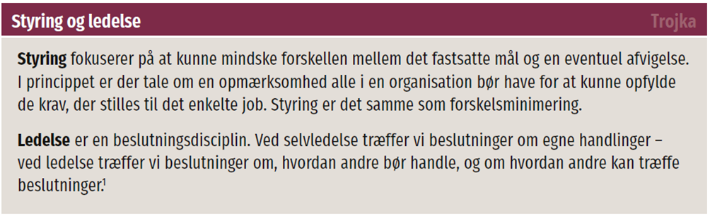 Styring har fokus på at minimere forskellen mellem de fastsatte mål og en eventuel afvigelse. Derfor drejer kommunikationen sig om at kunne styre rammer, regler, vilkår og jobkrav. Dermed bliver kommunikationen afsenderstyret og er præget af ydrestyring